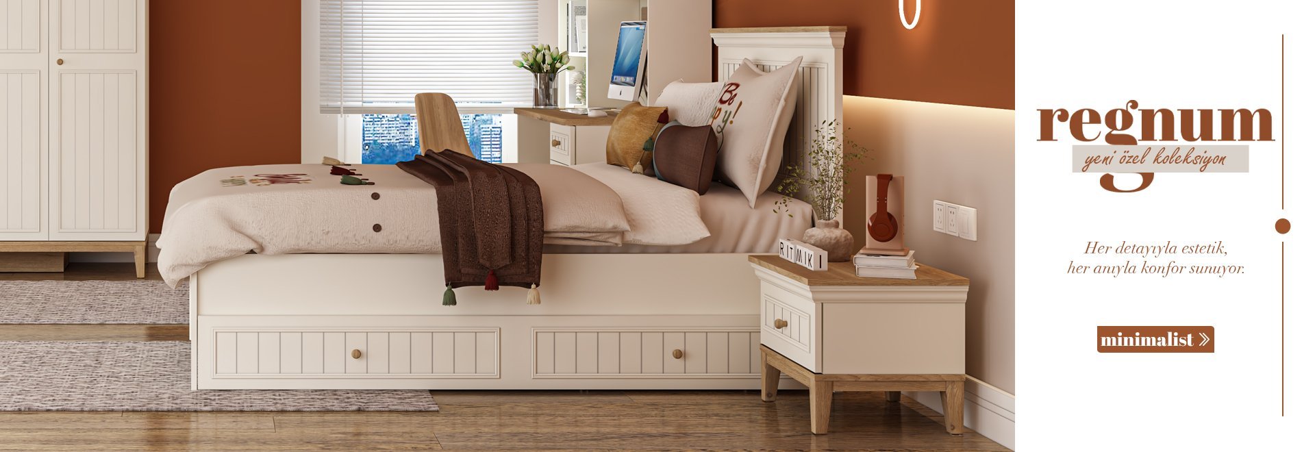 Regnum Genç Odası, modern tasarımı, fonksiyonel modülleri ve yüksek kalite malzeme yapısıyla gençlerin ihtiyaçlarına özel olarak tasarlanmıştır. Uzun ömürlü kullanım, güvenlik ve estetik detaylar bir arada sunulmuştur.