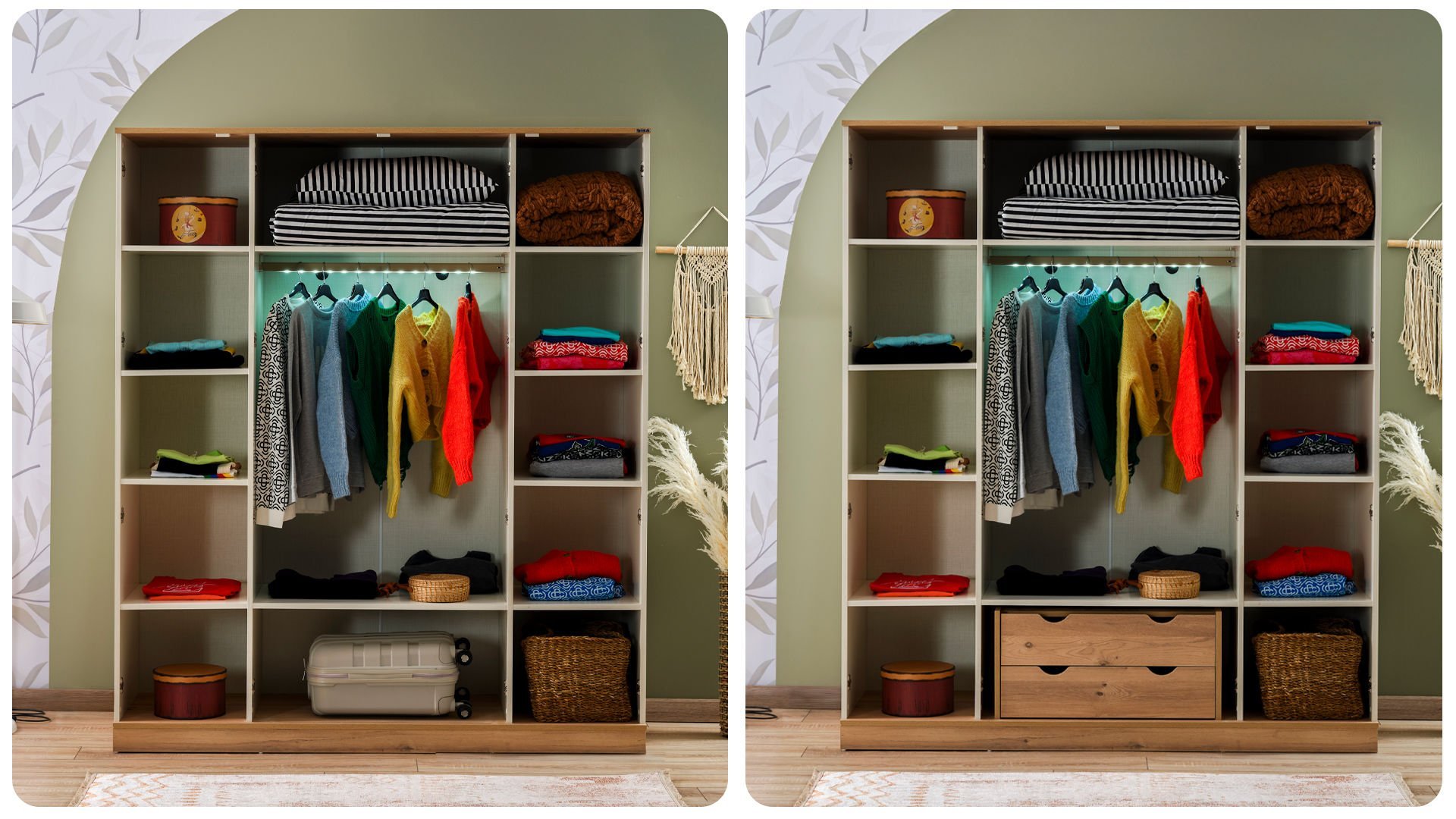 Melamin kaplı Yonga Levha kullanılmış olup suya ve neme karşı yüksek mukavemet gösteren, insan sağlığı kriterlerine uygun olarak kanserojen madde içermemektedir. * Dolap İçi Derinlik: 52 Cm |