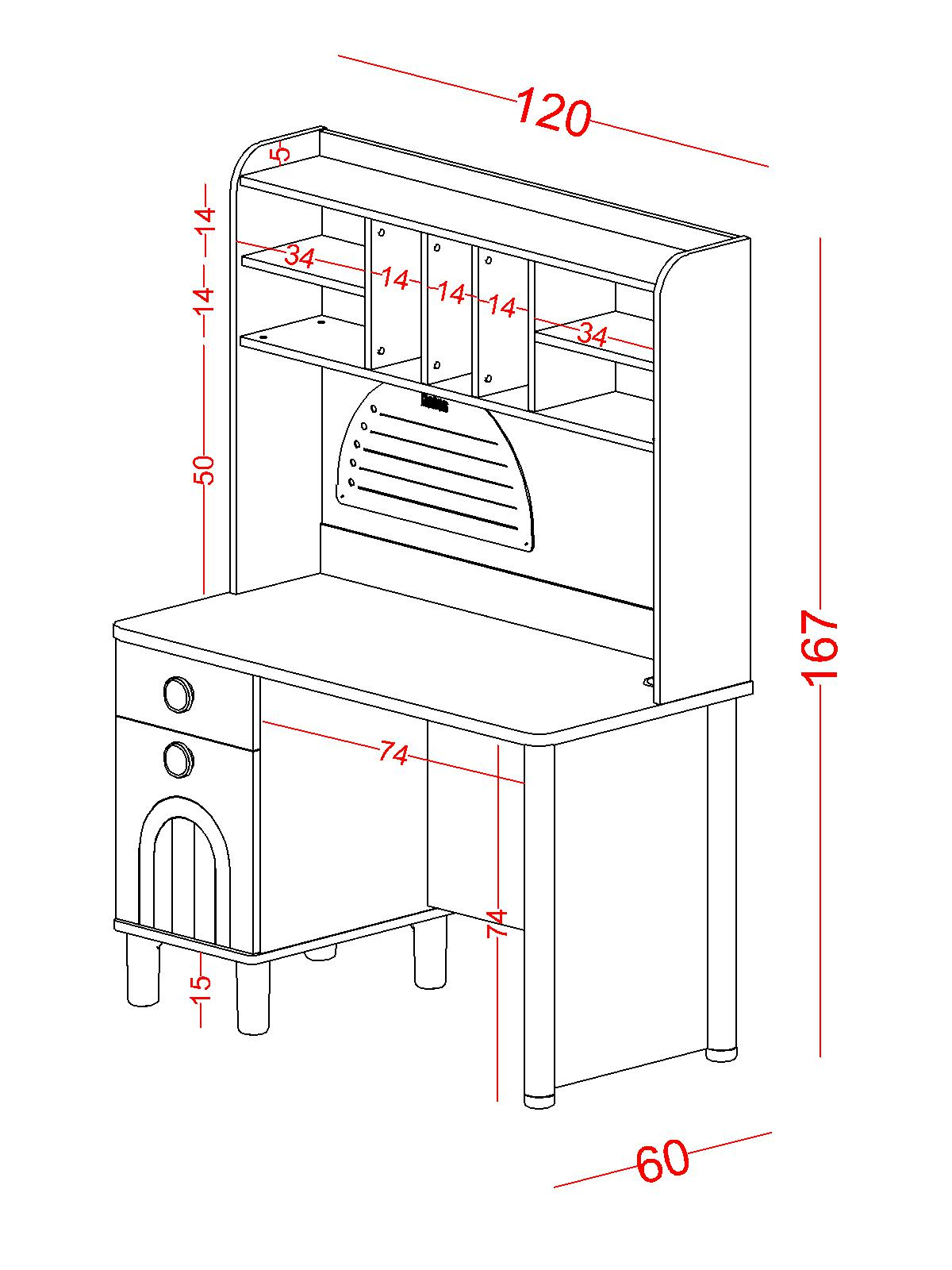 - Çeşitli eşyalarınızı, kitap ve defterleri rahatlıkla koyabileceğiniz genişlik ve derinlikte raflar