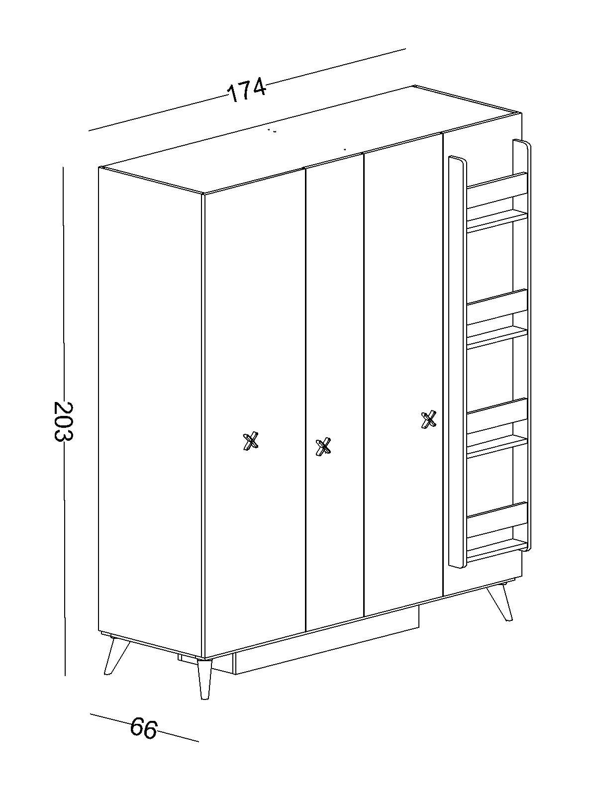 Genişlik: 174 cm Yükseklik: 203 cm Derinlik: 66 cm