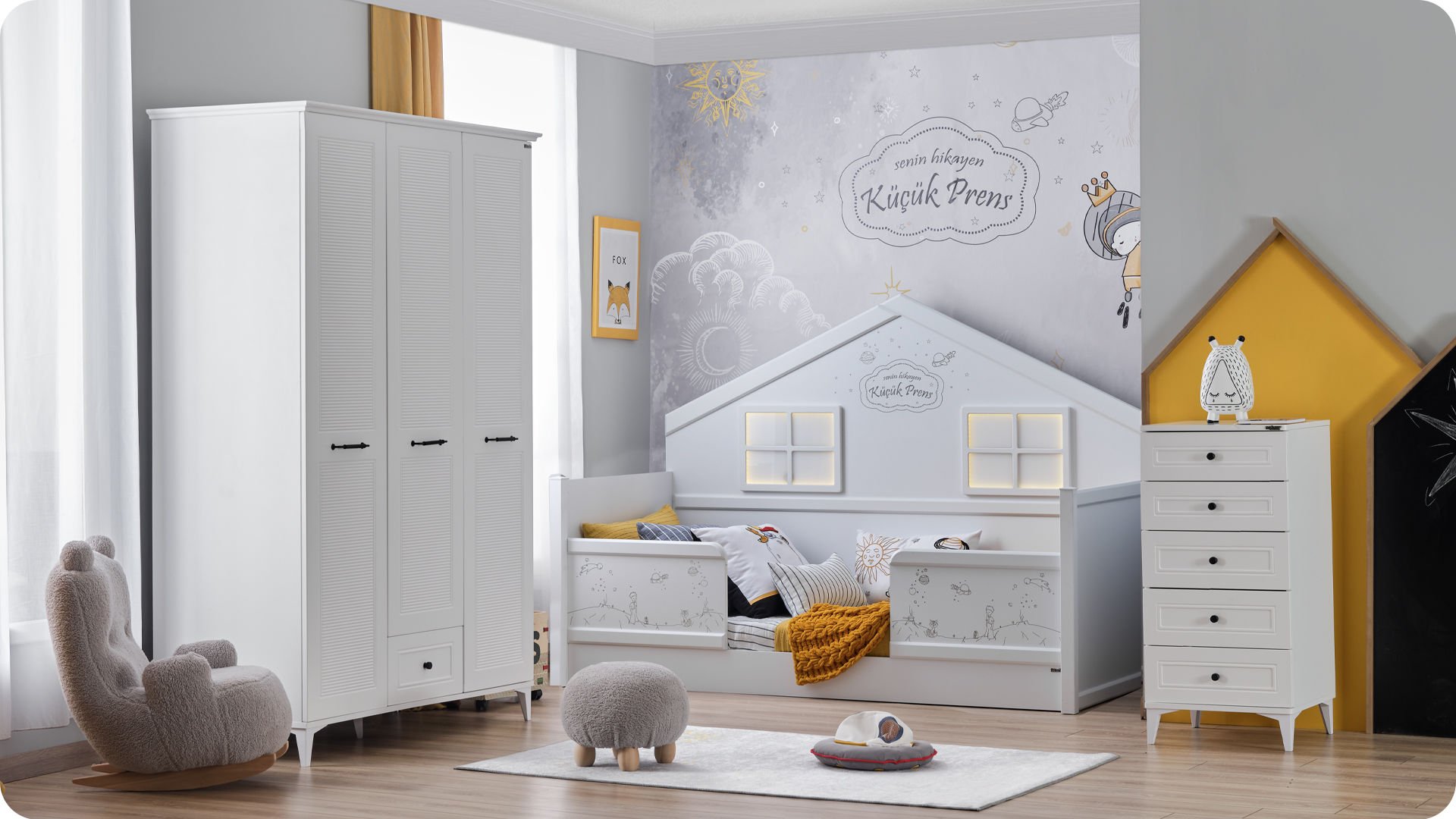 * Tercihe göre ön traversi aşağı veya yukarı kademede bağlayarak yatak yüksekliğini ayarlabilirsiniz