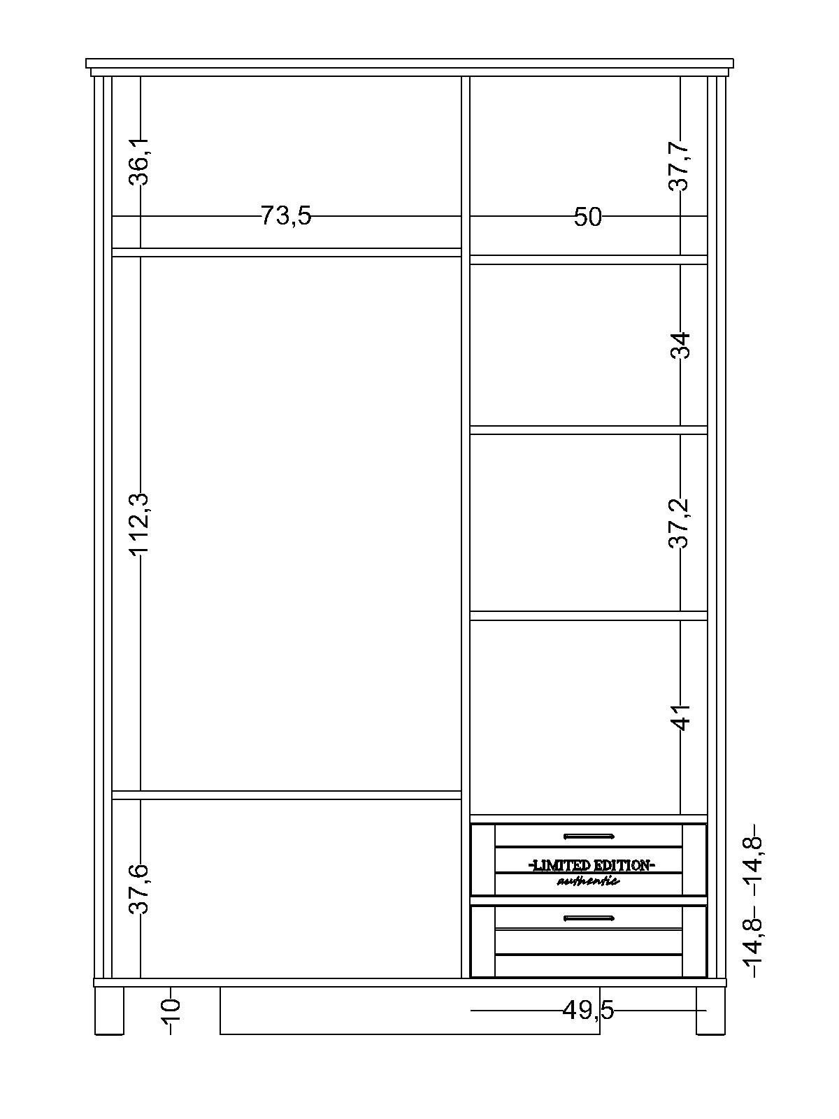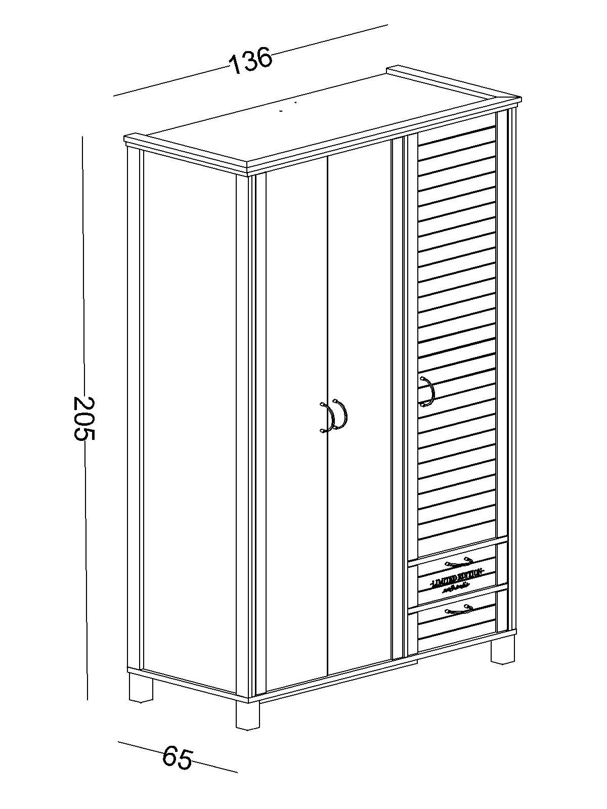 Genişlik: 136 cm Yükseklik: 205 cm Derinlik: 65 cm