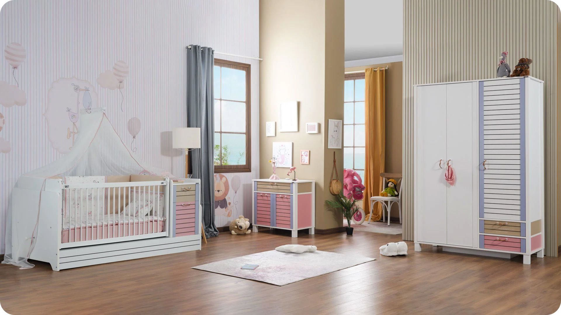 3 Kapaklı Dolap + Bebek Karyolası 70X130 + Şifonyer