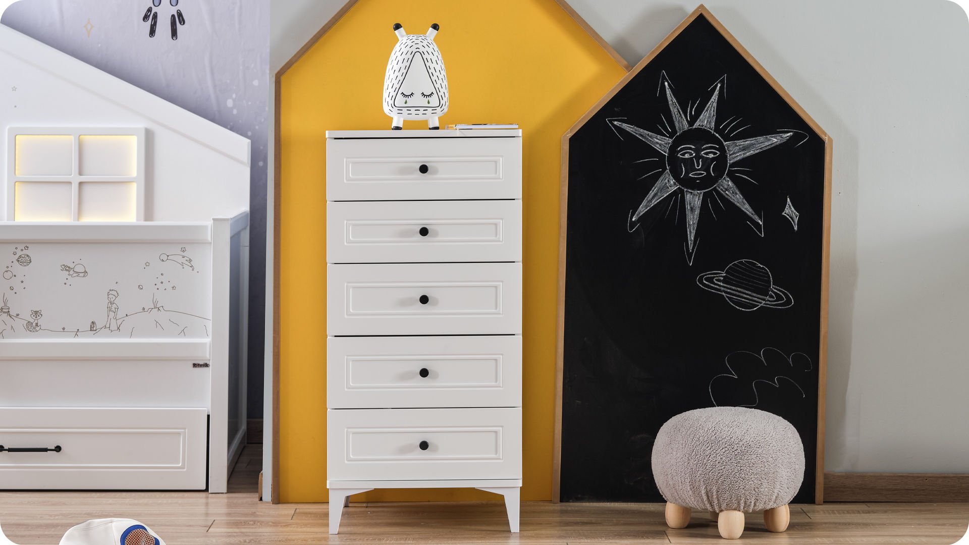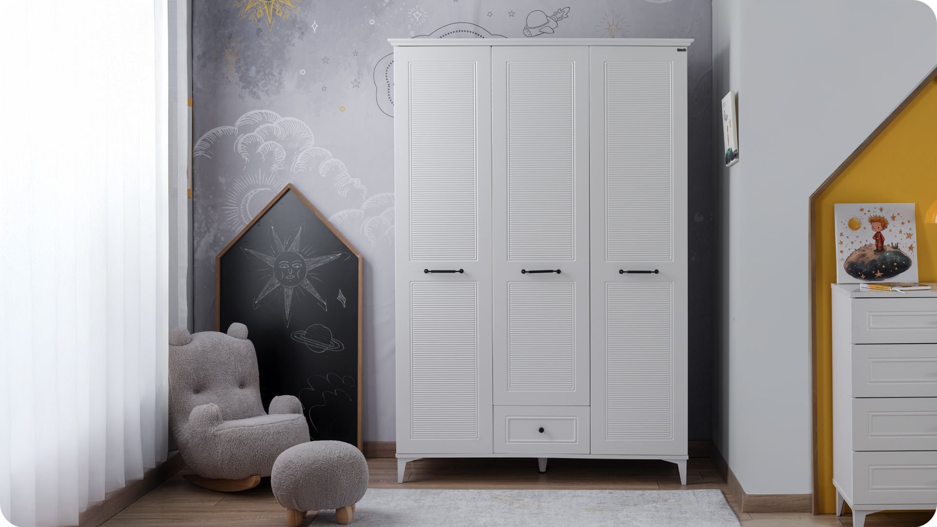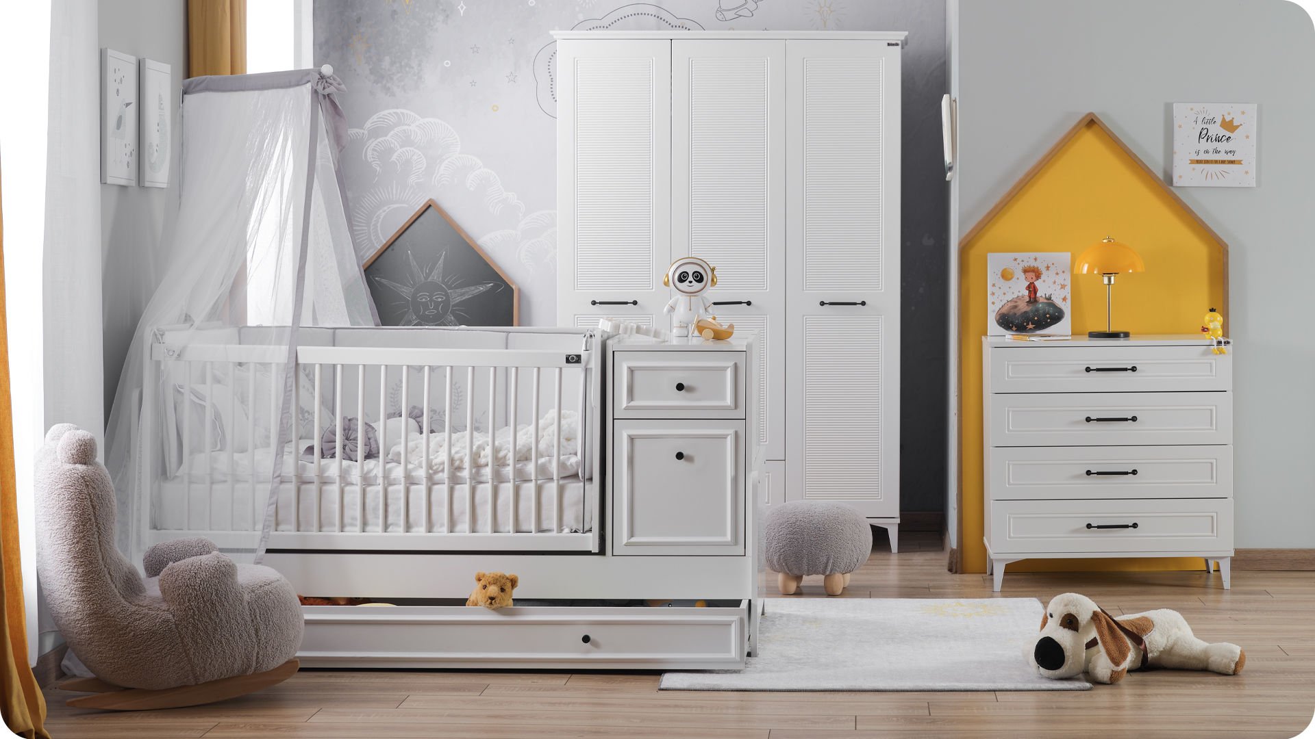 Golf 3 Kapaklı Dolap Aynasız + Dobby Bebek Karyolası 80X130 + Şifonyer