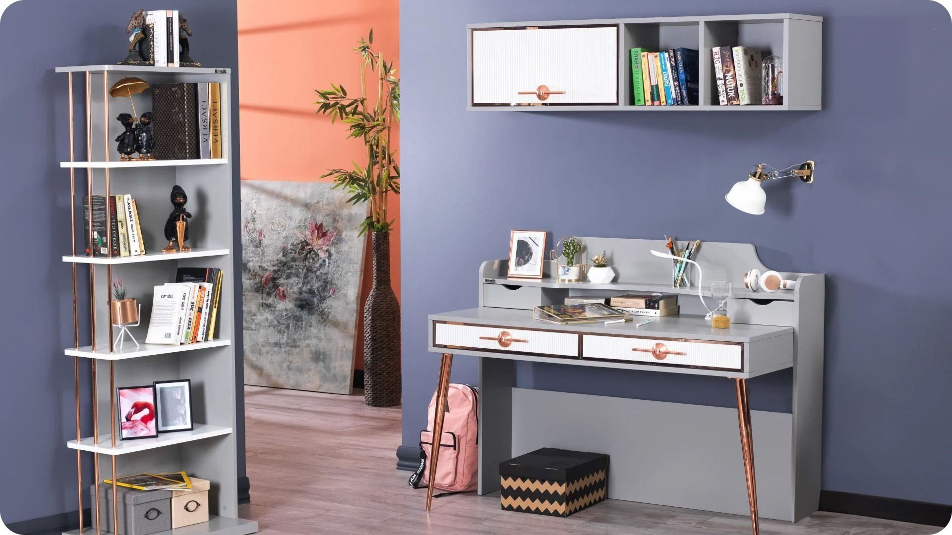 * Kitap, defter ve diğer eşyalarınızı rahatlıkla koyabilecek özel üst bölüm ve dekoratif çok amaçlı çekmeceler
