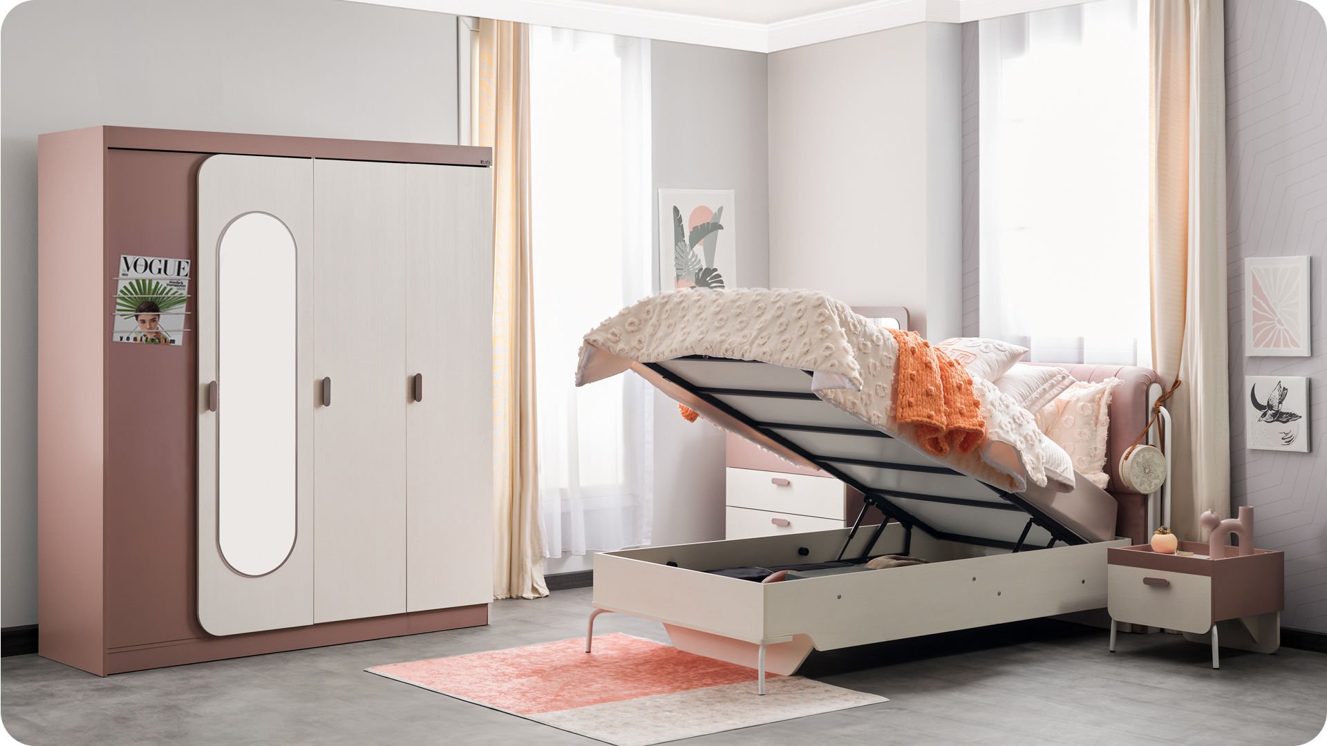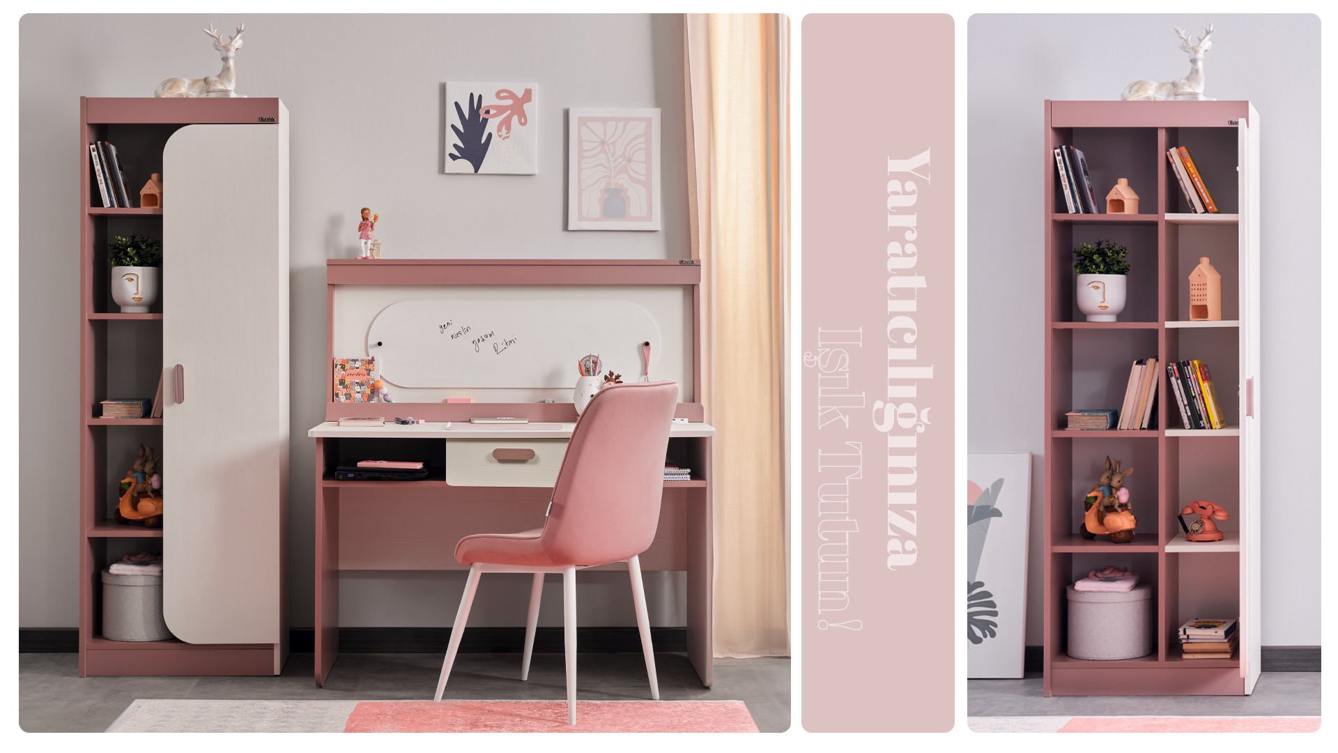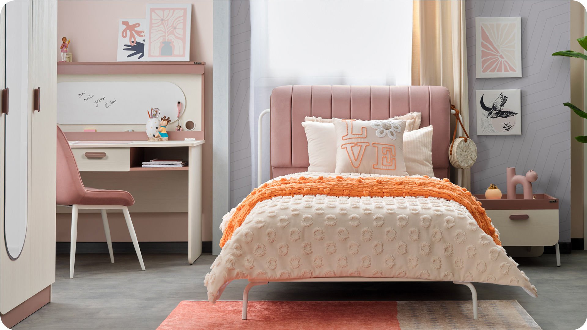 3 Kapaklı Dolap + Karyola 100X200 + Çalışma Masası