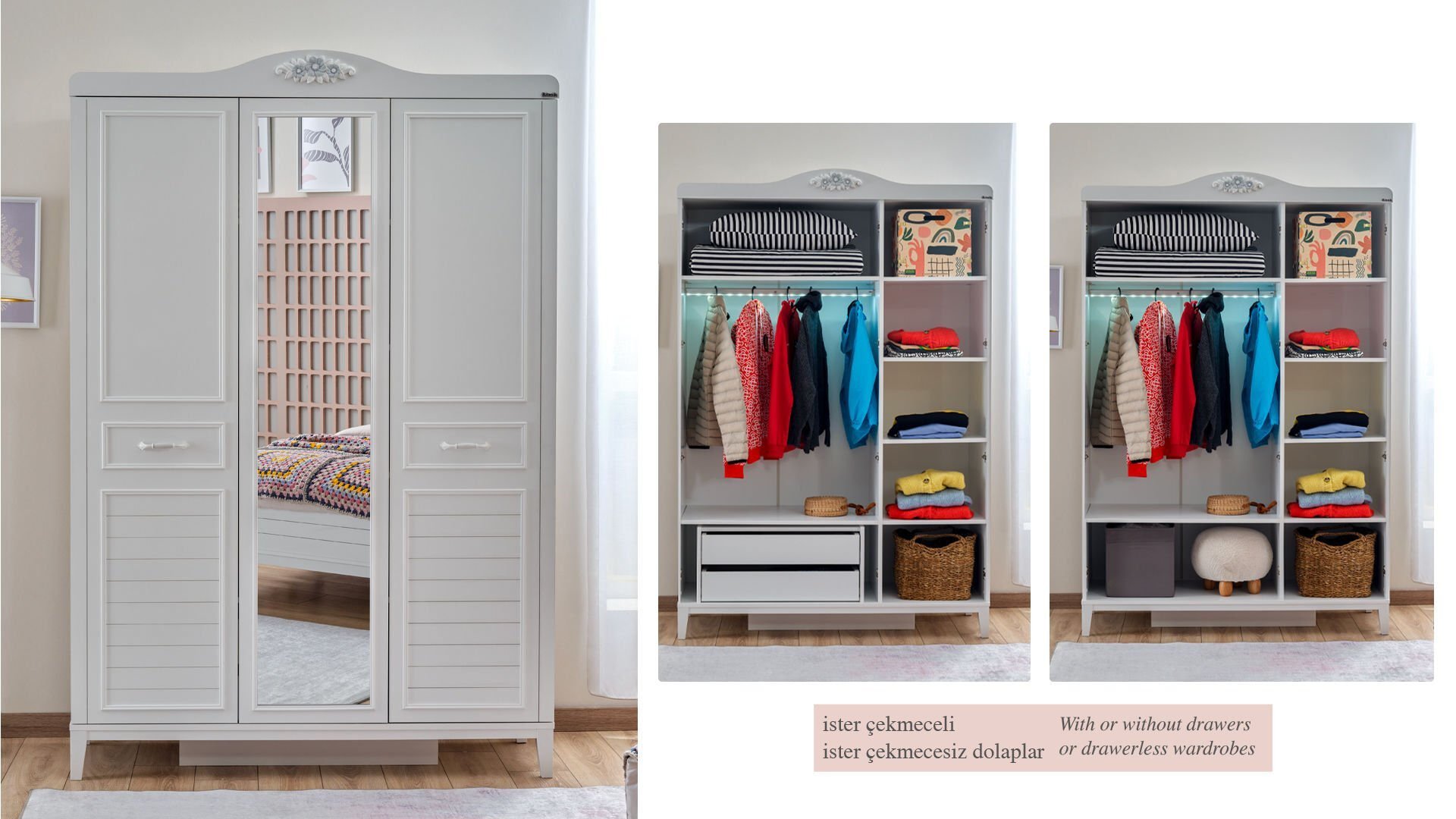 * Deprem ve Çocuk Güvenliği için duvar sabitleme aparatı mevcuttur.
