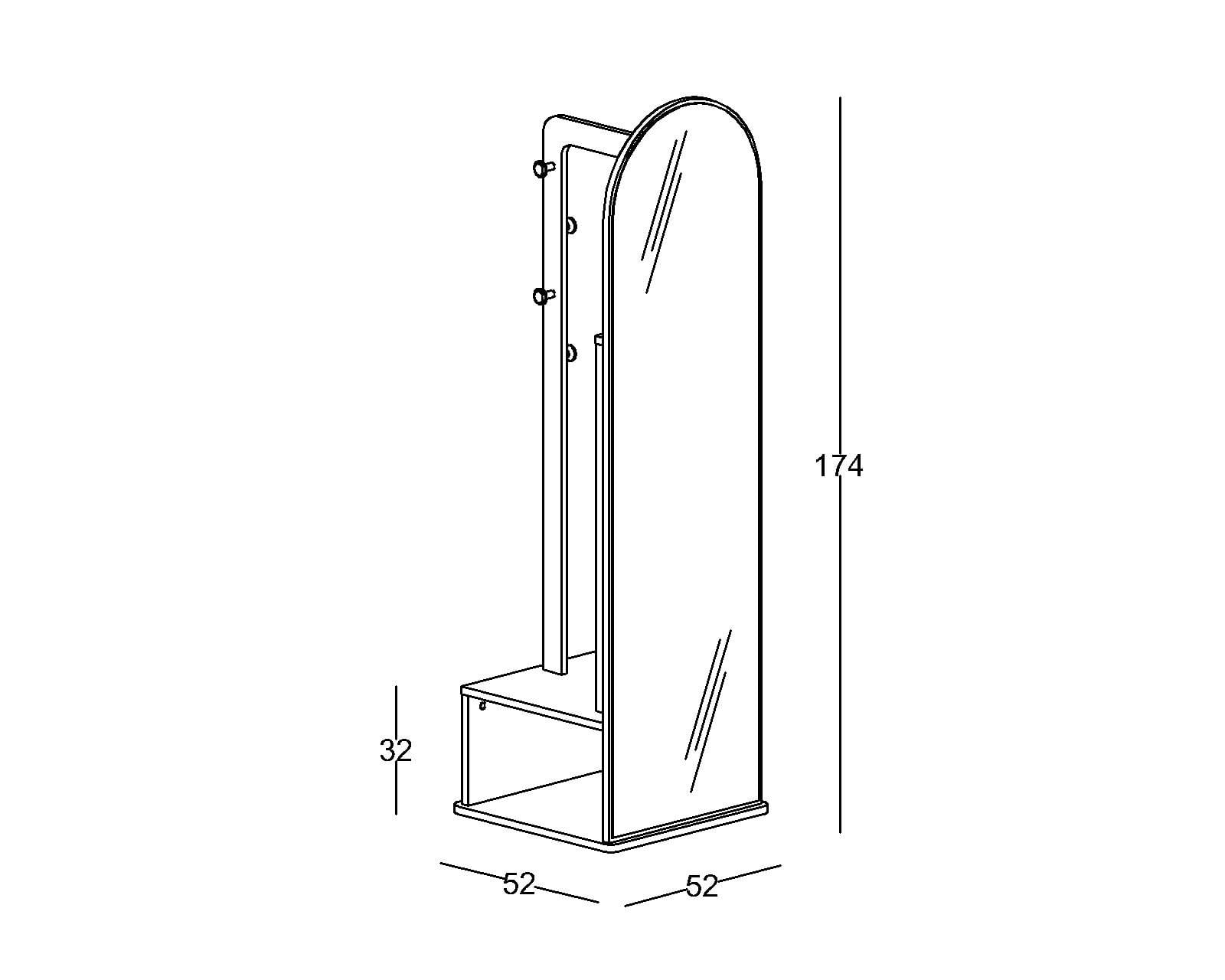 G/W: 52 cm Y/H: 174 cm D/D: 52 cm
