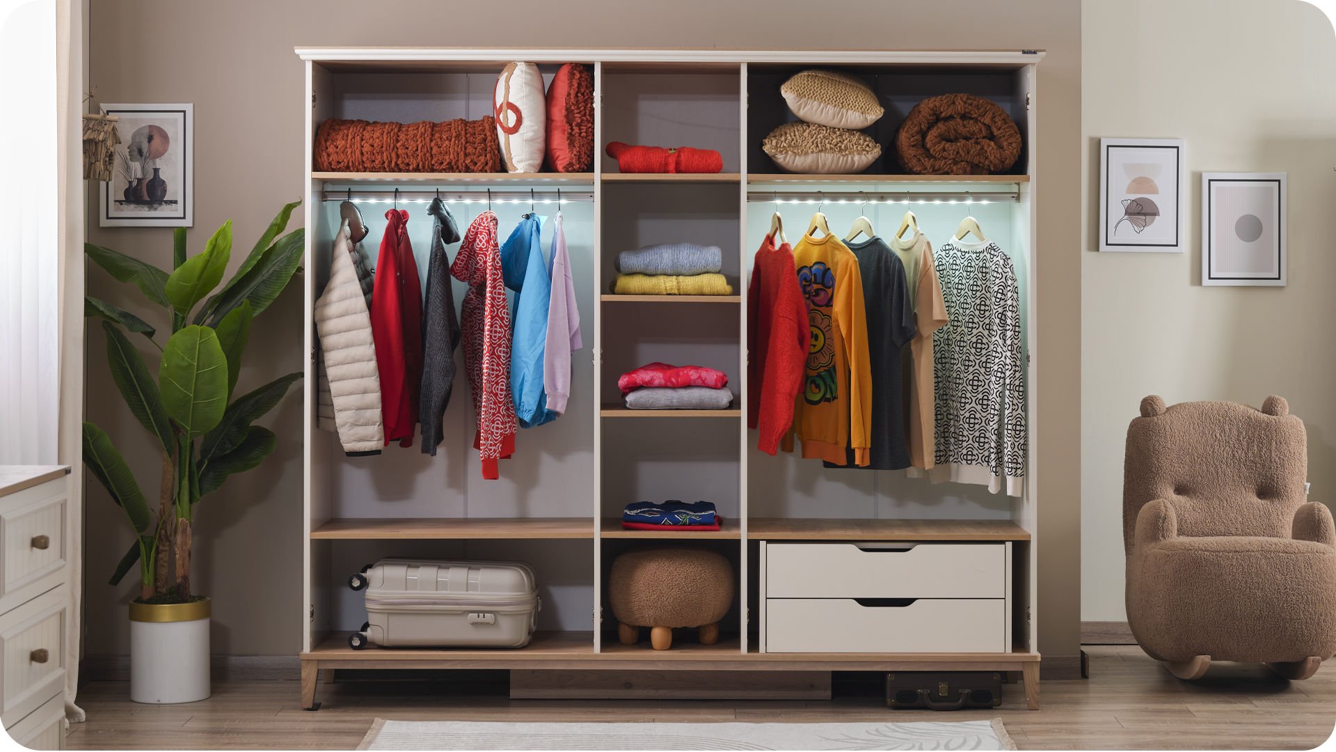 * Dolap içi led aydınlatmalı askılık