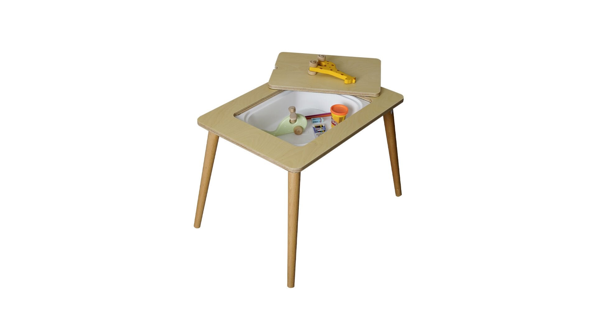 Çocukların oyun oynarken öğrenmesini destekleyen Nino Aktivite Masası, fonksiyonel yapısı ve doğal malzeme kullanımıyla öne çıkar. Ergonomik tasarımı ve yuvarlatılmış hatları sayesinde güvenli ve konforlu bir kullanım sunar.