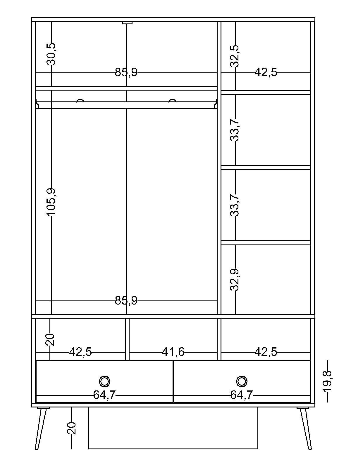 Genişlik: 134 cm Yükseklik: 203 cm Derinlik: 59 cm