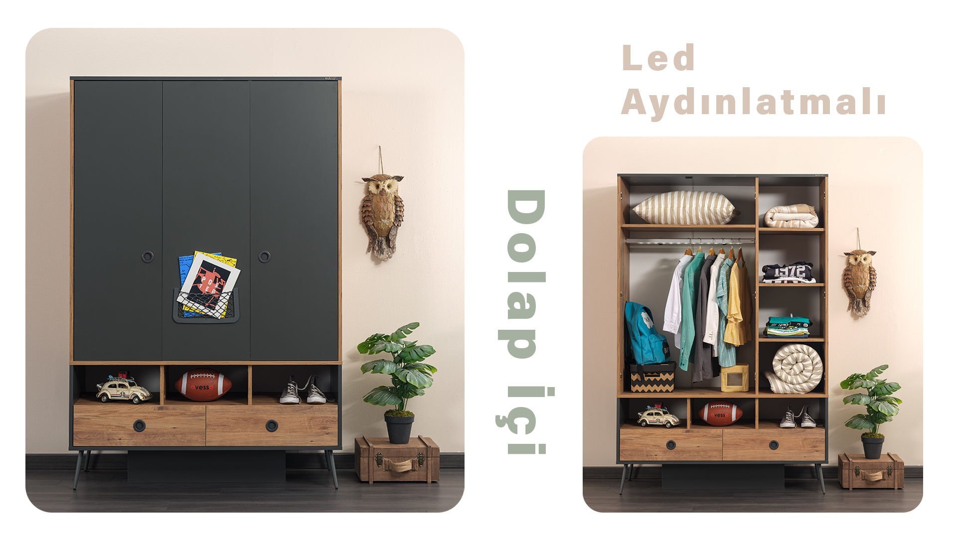 * Dolap orta bölümde oluşturulan farklı eşyaların yerleştirilmesine kolaylık sağlayan alan.