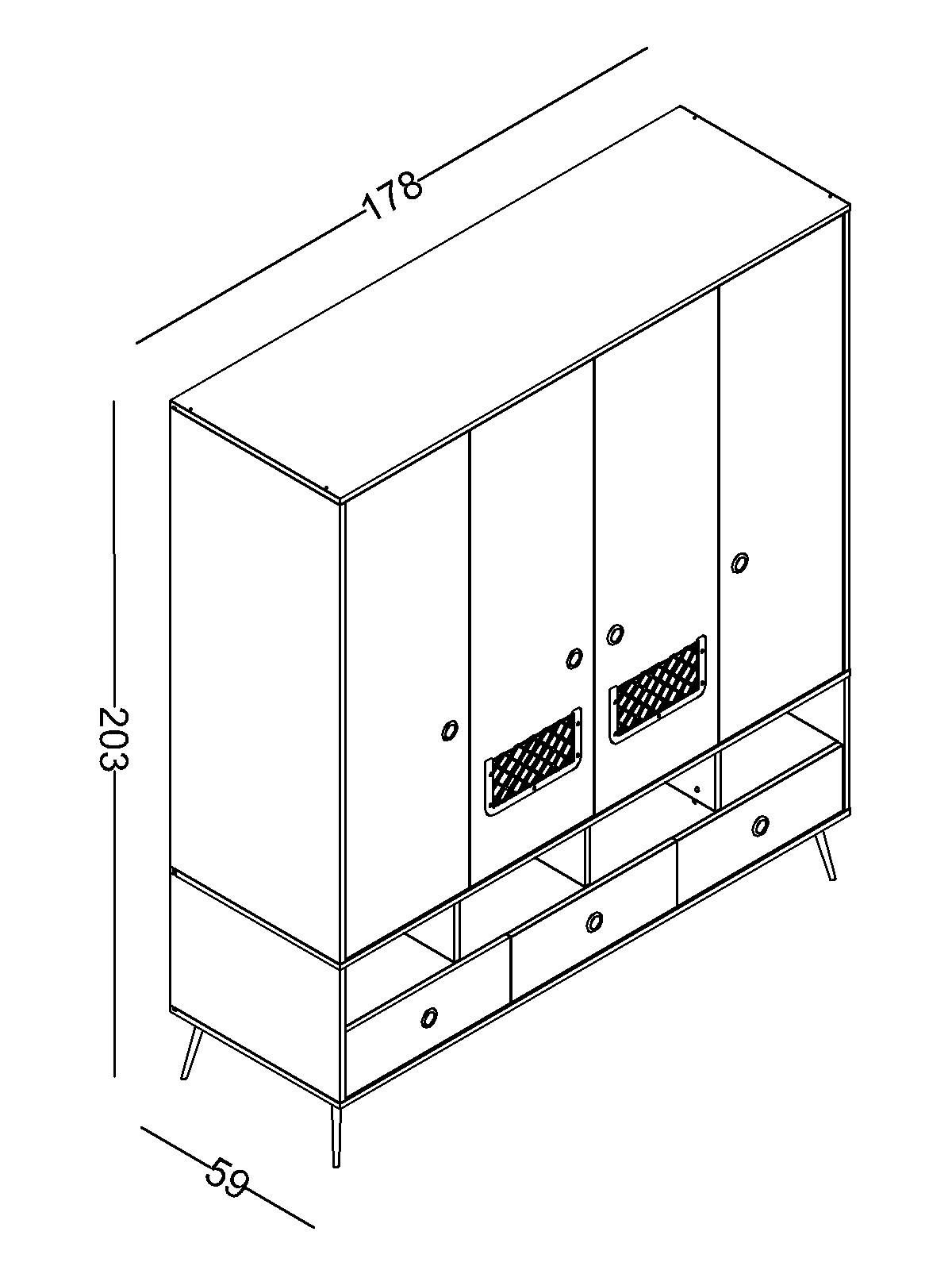 Genişlik: 178 cm Yükseklik: 203 cm Derinlik: 59 cm