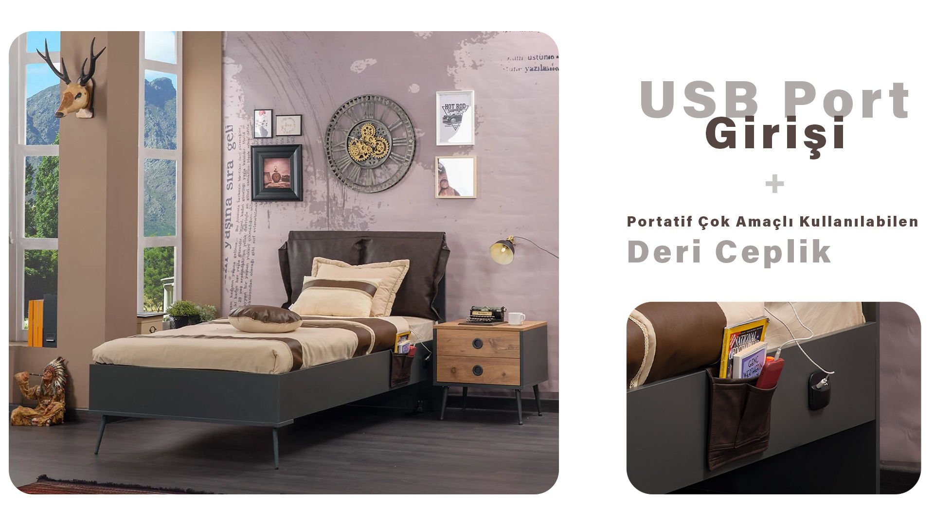 * Yatak başı özenle dikilmiş ve yumuşak malzemelerden üretilen deri kaplama başlık.