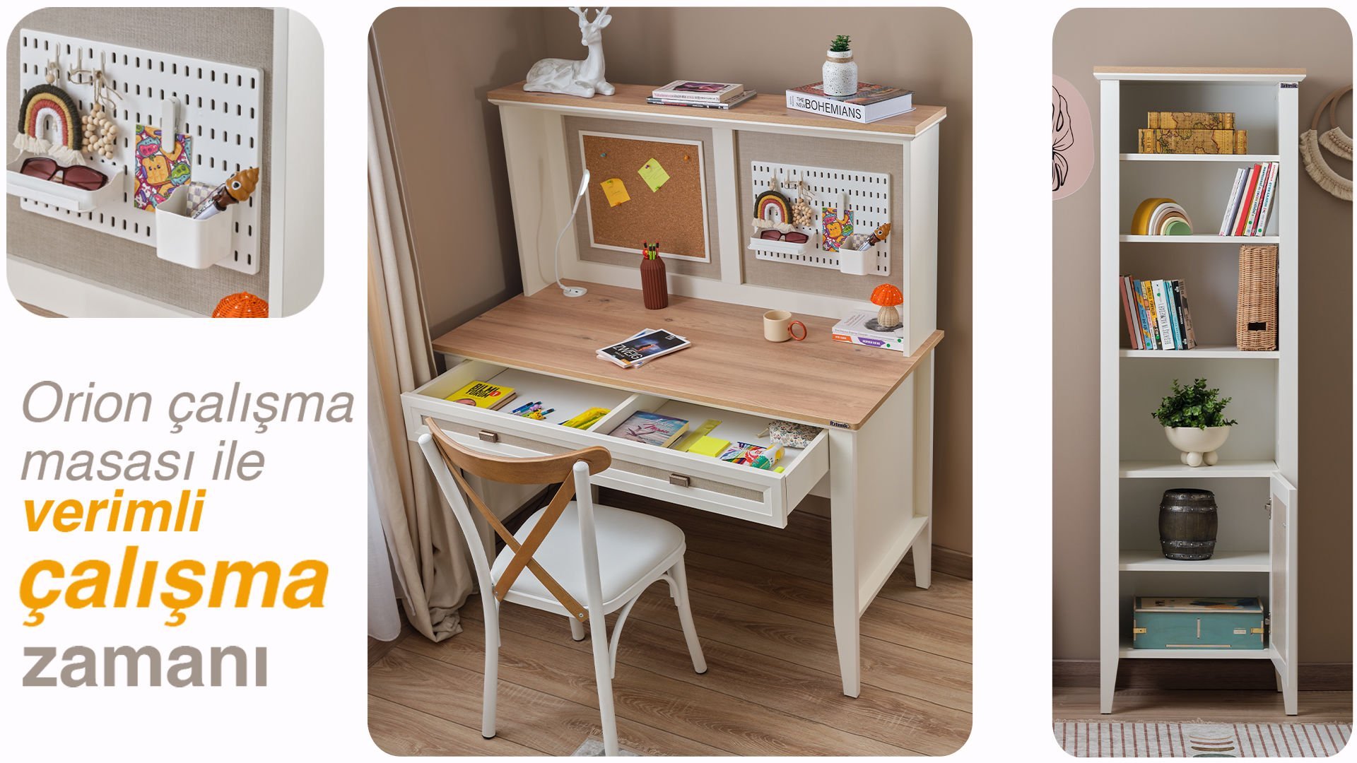 * Çeşitli eşyalarınızı asabileceğiniz, kalemlerinizi ve küçük eşyalarınızı muhafaza edebileceğiniz özel tasarım çok amaçlı pano