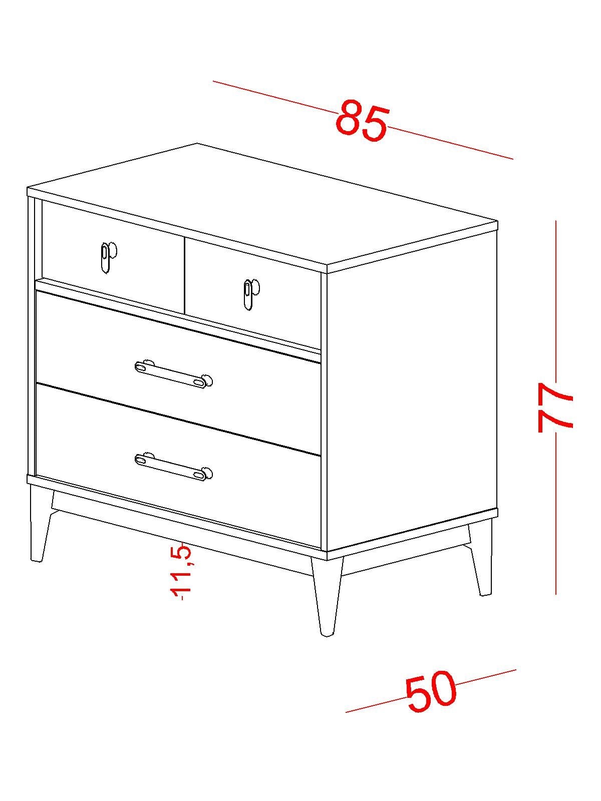 Şifonyer Ölçüler: Genişlik: 85 cm · Derinlik: 50 cm · Yükseklik: 77 cm