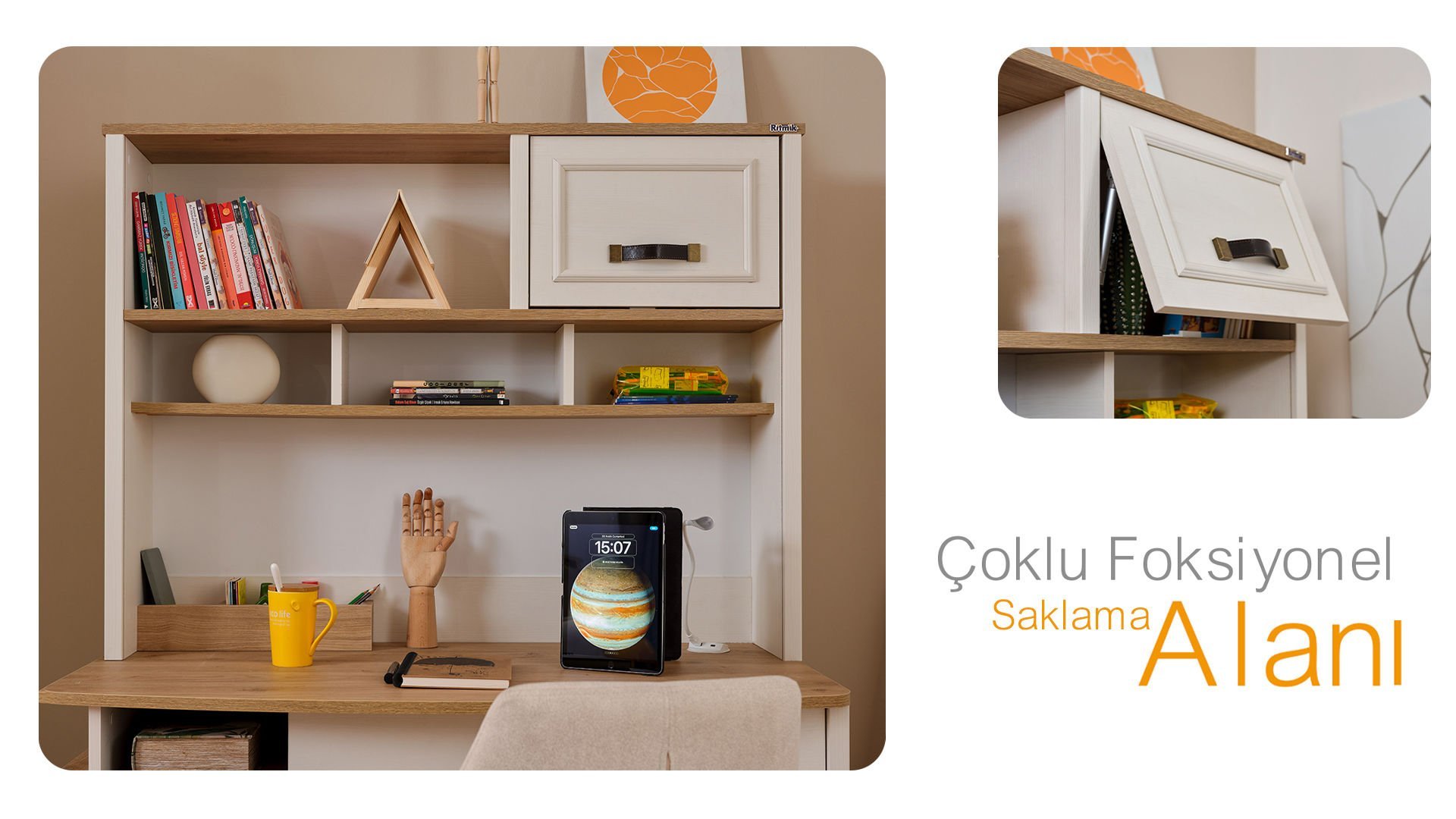 * Kitap ve defterlerinizi rahatlıkla koyabileceğiniz genişlik ve derinlikte bölmeler