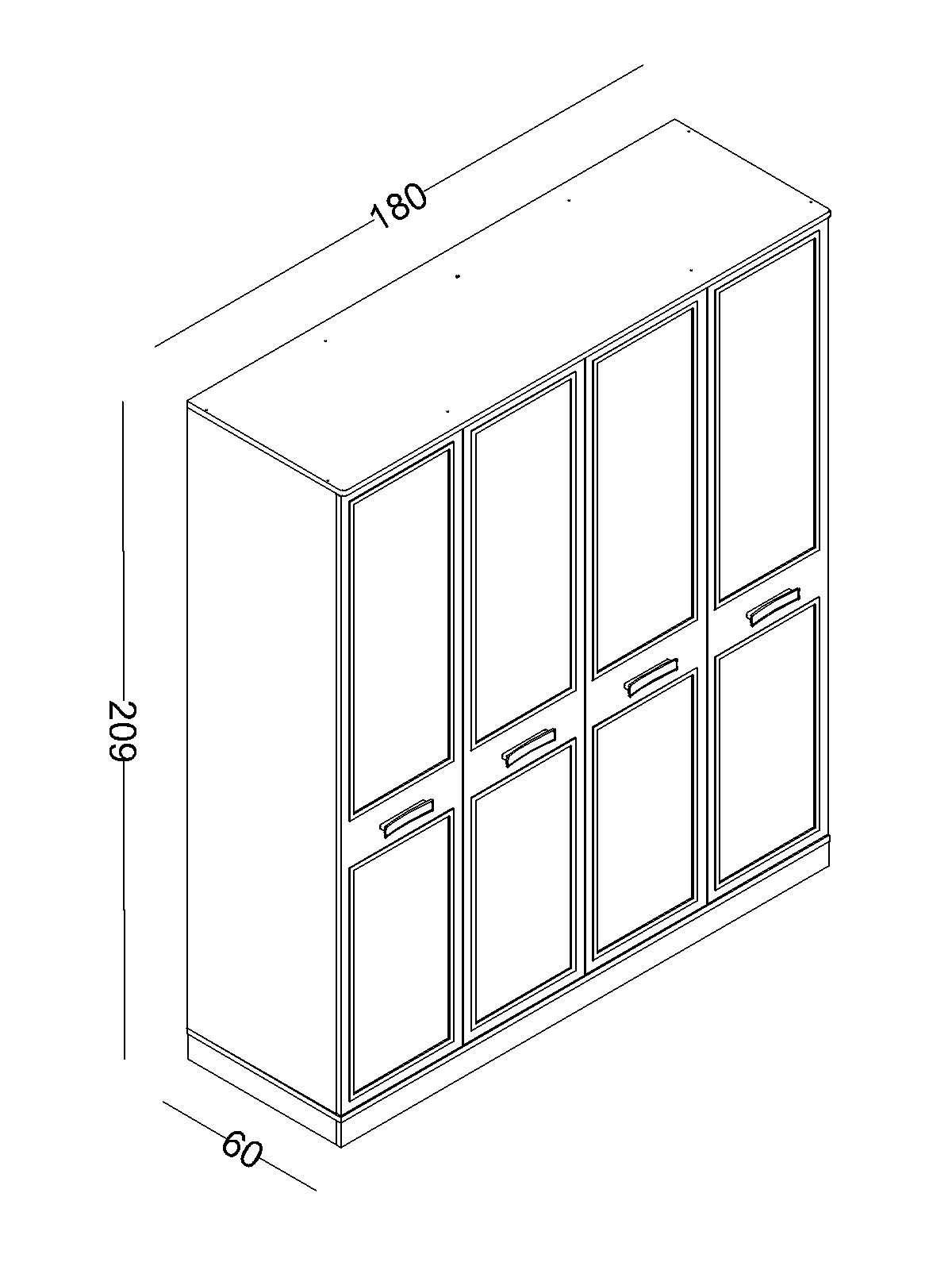 Genişlik: 180 cm Yükseklik: 209 cm Derinlik: 60 cm