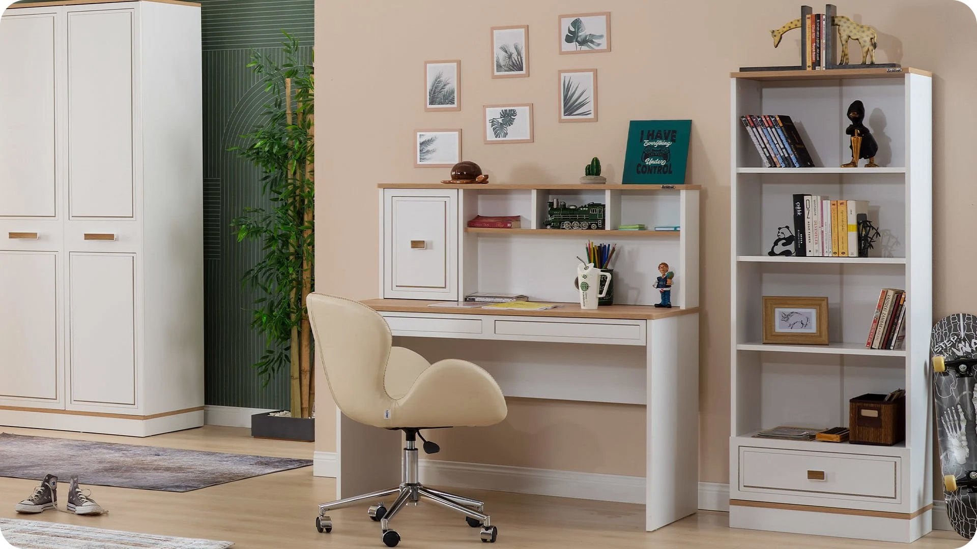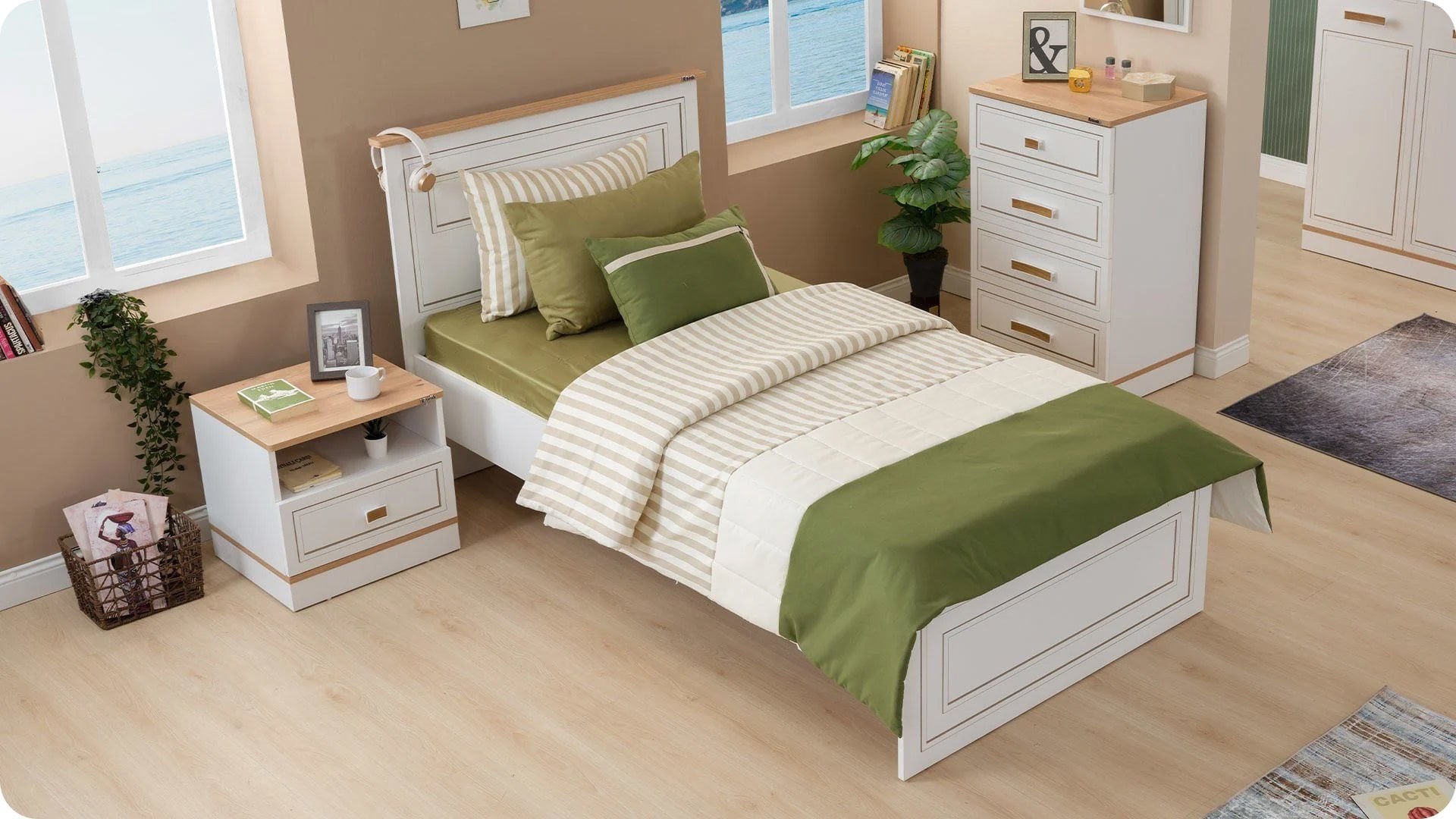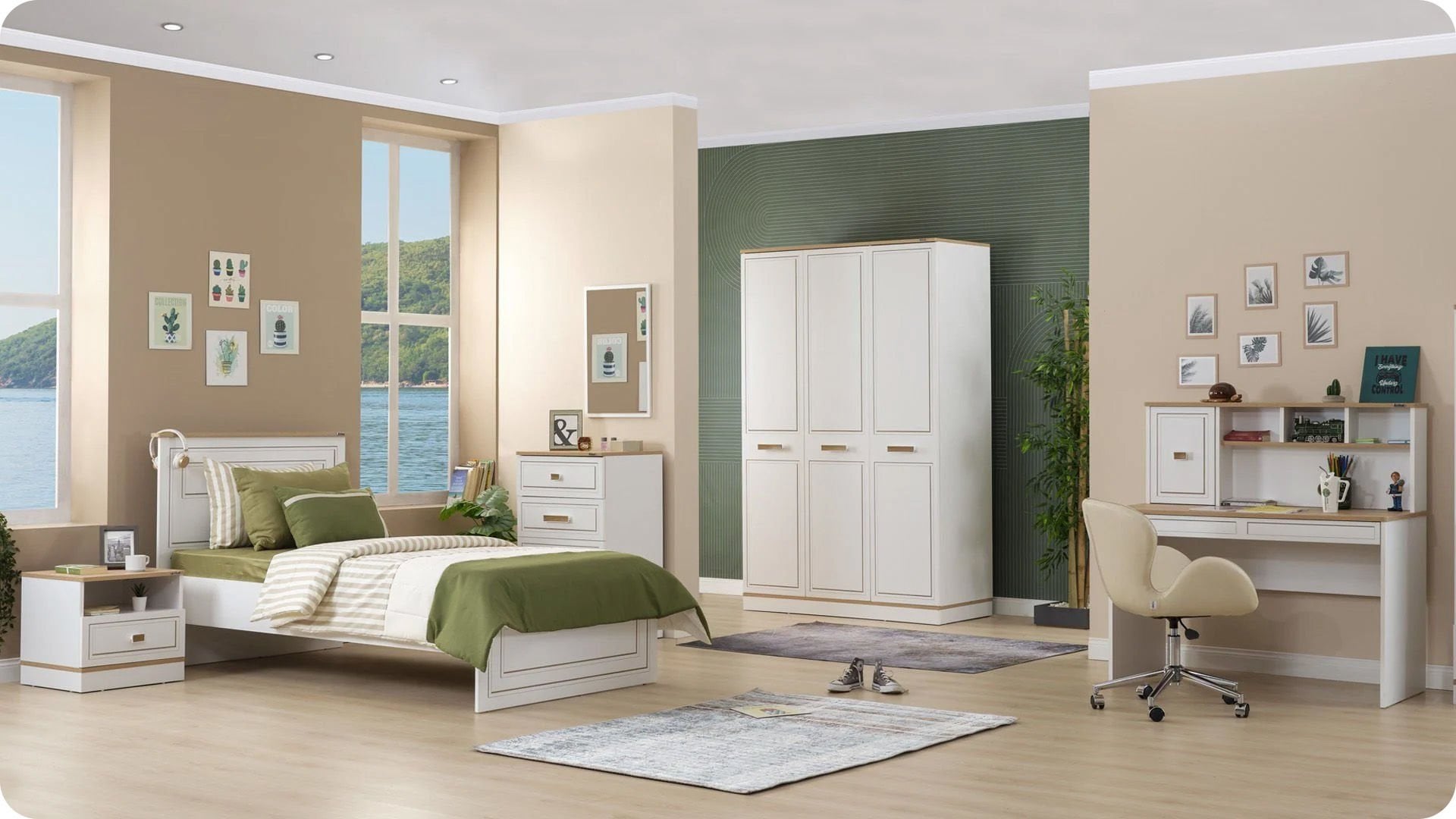 3 Kapaklı Dolap + Karyola 100X200 + Çalışma Masası