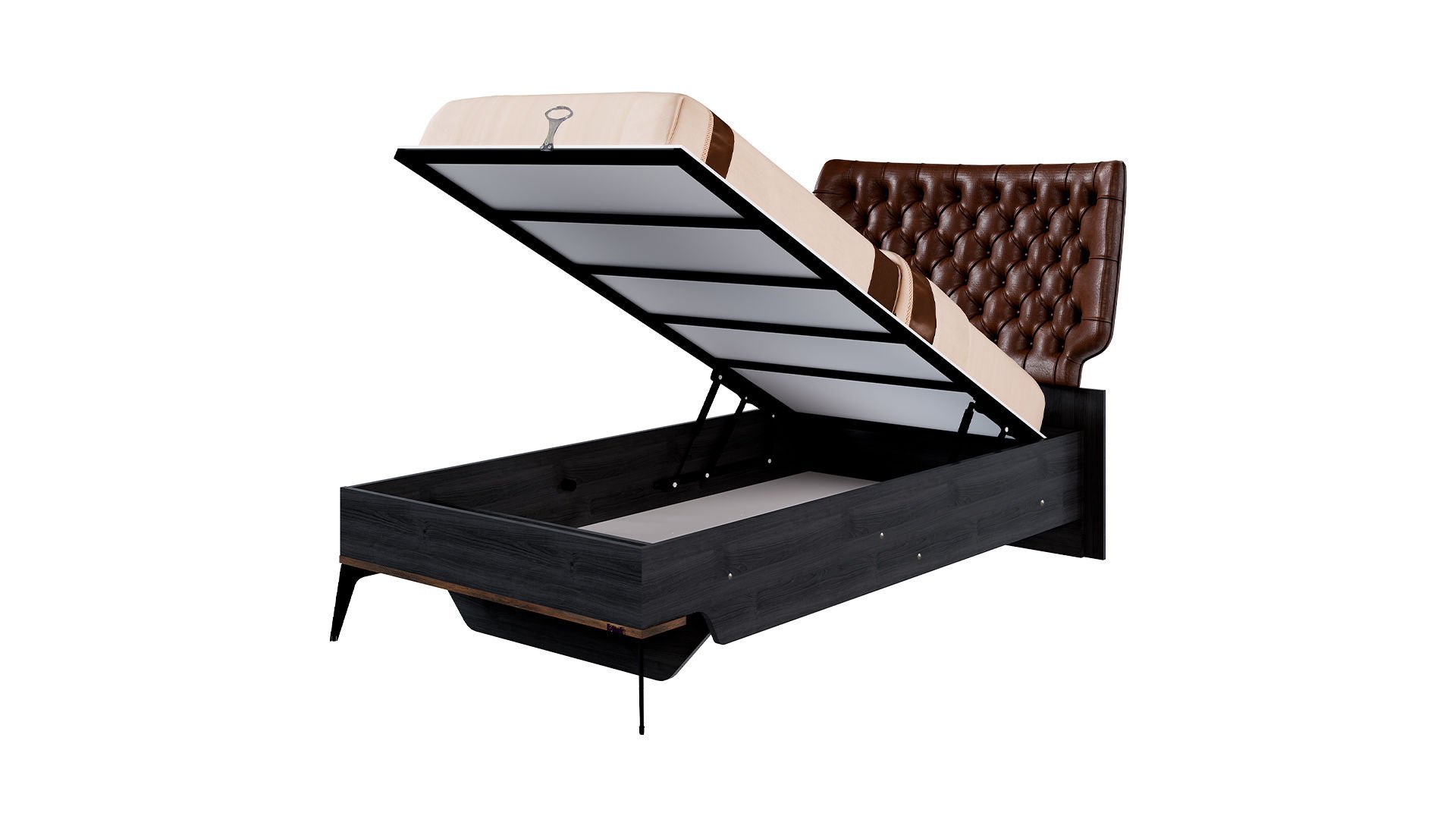 * Depolama alanlı emniyet kilitli amortisörlü , maksimum taşıma kapasitesi 130 kg , iç yatak ölçüsü 100x200 cm ile uzun yıllar kullanılabilir