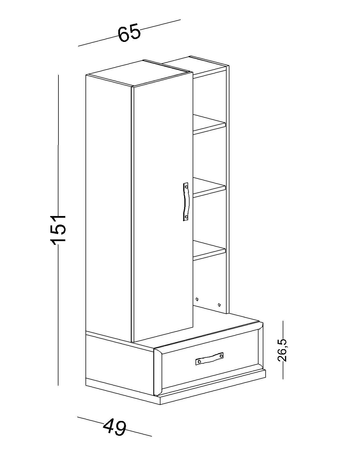 Genişlik: 65 cm Yükseklik: 151 cm Derinlik: 49 cm