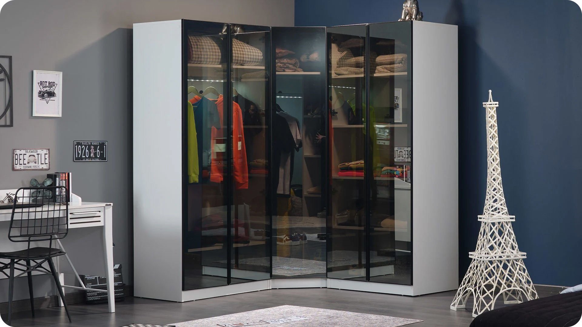 Twin Köşe Cam Kapaklı Dolap