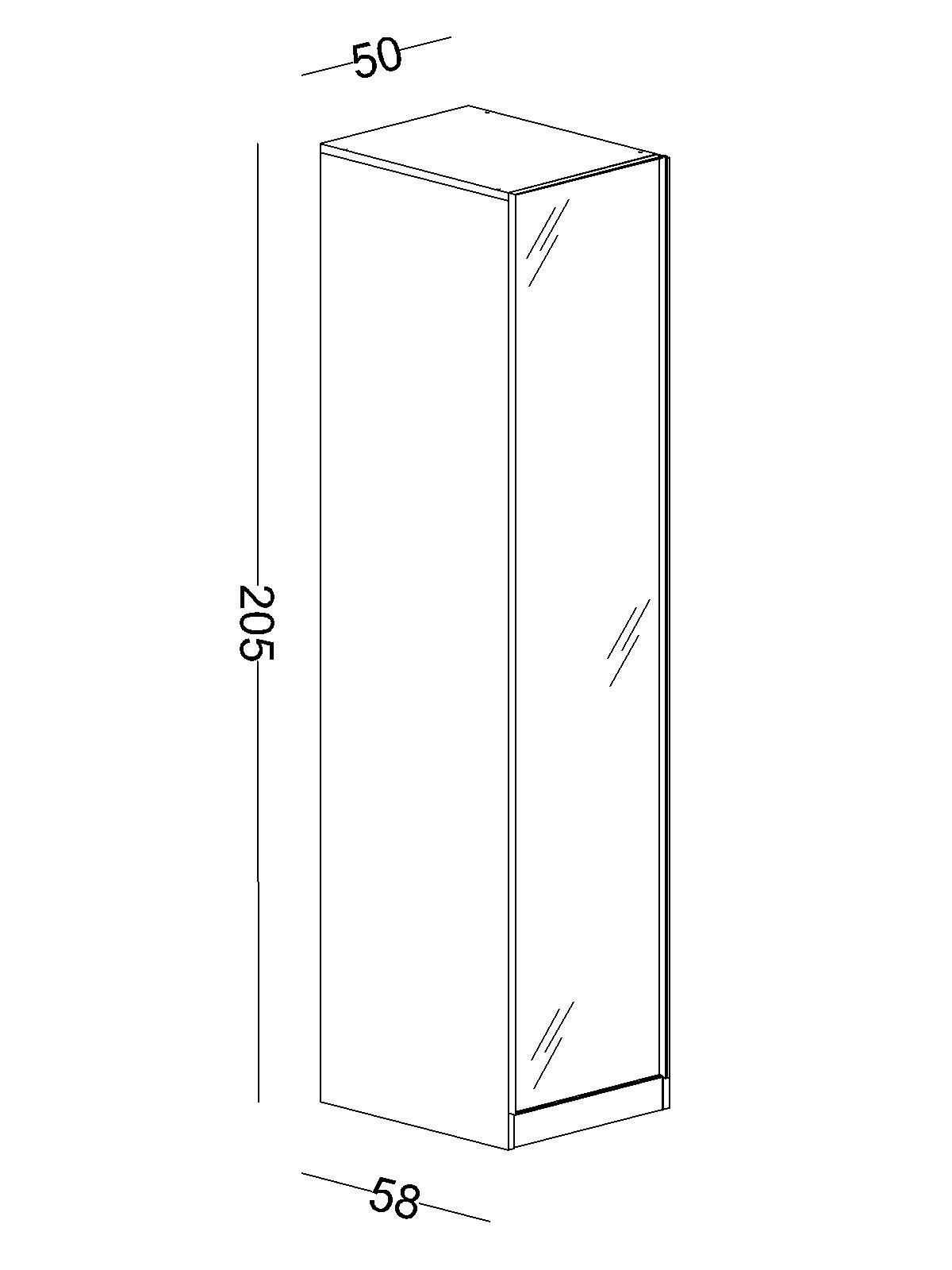 Genişlik: 50 cm Yükseklik: 205 cm Derinlik: 58 cm